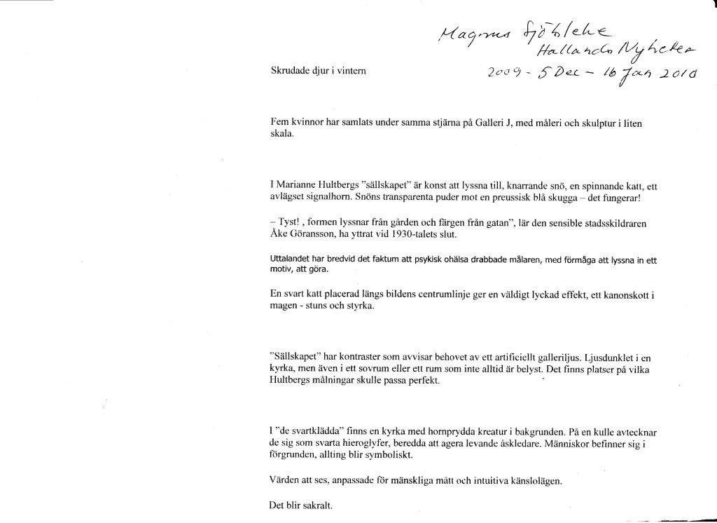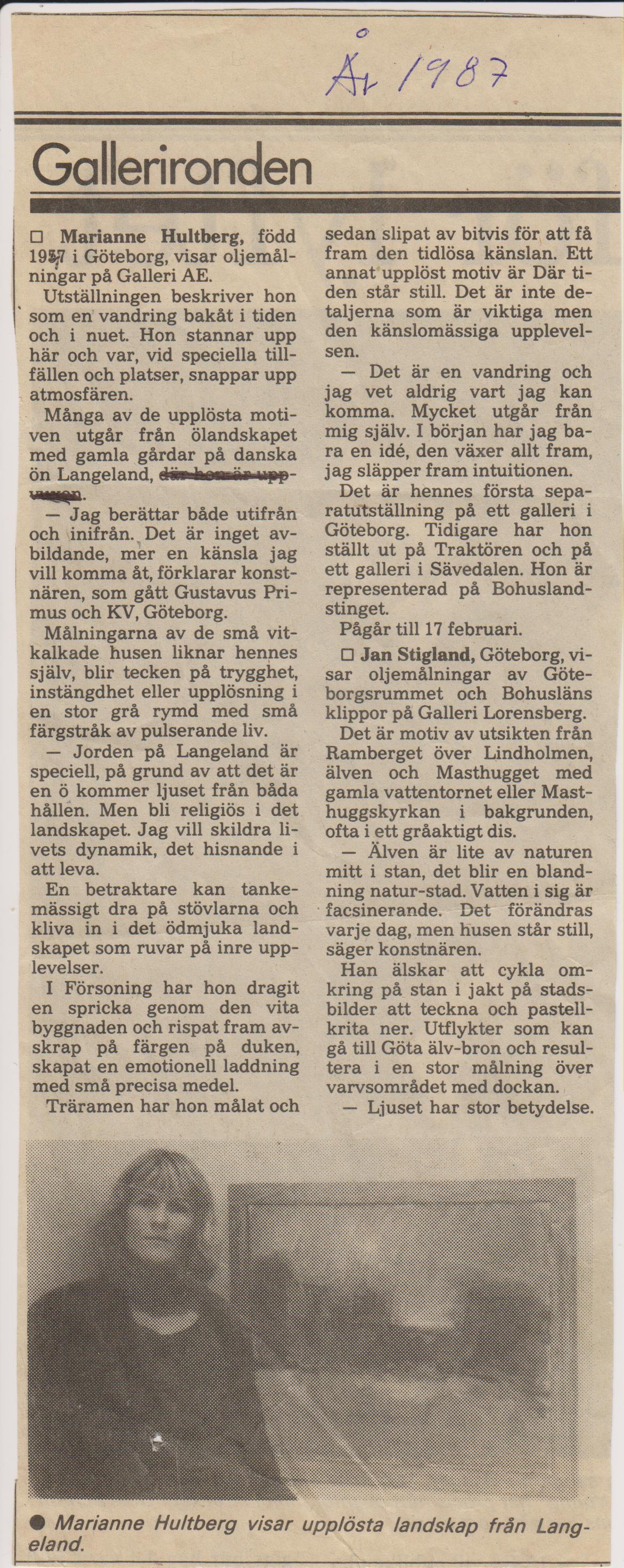 Klicka på länkarna för att läsa recensionerna Göteborgsposten februari 1987 Bohuslänningen 15 april 2003 Bohuslänningen 18 februari 2009 Hallands Nyheter 5 december 2009 Hallandsposten 5 december 2009 Fyns Amts Avis 24 december 2011 Göteborgsposten oktober 2012 Fyns Amts Avis 16 september 2014 Fyns Amts Avis 20 september 2014 Kunstavisen oktober 2014